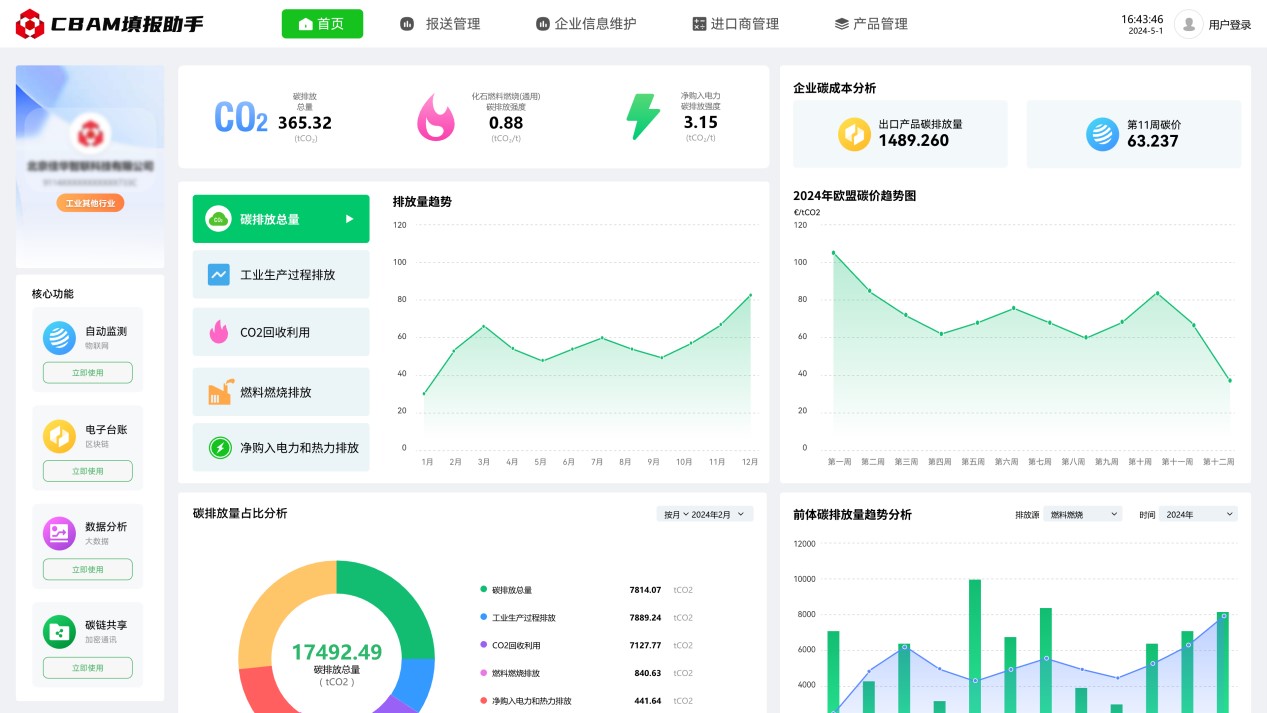 2023年10月1日起,歐盟碳邊境調(diào)整機(jī)制(CBAM)已進(jìn)入過(guò)渡期,CBAM涵蓋范圍的出口產(chǎn)品需按時(shí)提交產(chǎn)品碳排放報(bào)告,未提交報(bào)告的企業(yè)將面臨高額處罰。為解決企業(yè)由于官方政策文件理解難度大,專業(yè)門(mén)檻高,數(shù)據(jù)搜集難度大,部分?jǐn)?shù)據(jù)缺失無(wú)法填等困擾,推出碳關(guān)稅管理平臺(tái)(CBAM填報(bào)助手),通過(guò)數(shù)字化方式,為企業(yè)提供碳數(shù)據(jù)填報(bào)、碳數(shù)據(jù)核算、碳數(shù)據(jù)報(bào)送、碳數(shù)據(jù)認(rèn)證、咨詢培訓(xùn)等全流程服務(wù)。可極大減少企業(yè)碳排放報(bào)送門(mén)檻,助力企業(yè)低成本合規(guī)報(bào)送碳排放數(shù)據(jù)。